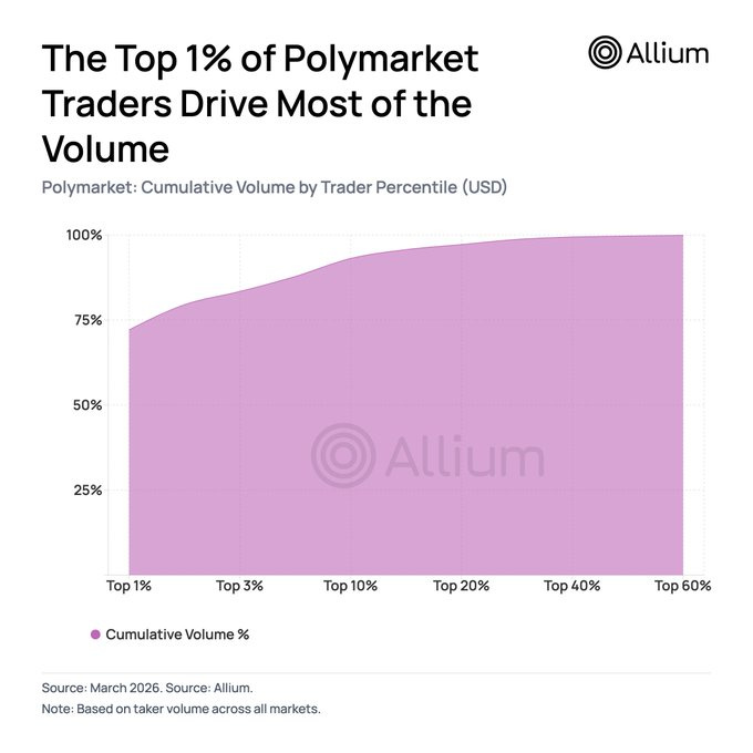 The top 1% of traders on Polymarket generate ~75% of total platform volume. Link