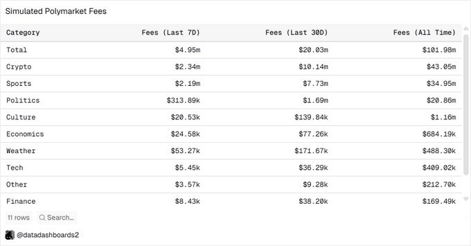 Estimated Polymarket revenue under the current fee structure ranges between $800K and $1M per day. Link