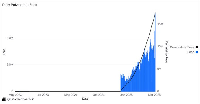 After turning on the fee switch, Polymarket earned ~$600K in a single day. Link