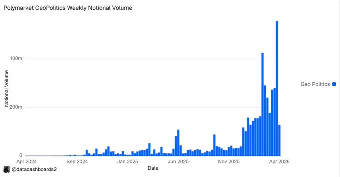 Polymarket just cleared $500M+ in weekly geopolitics volume - a new ATH (link)
