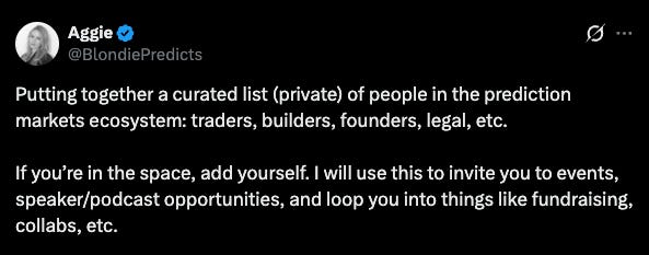 If you're building in prediction markets, make sure to fill out Aggie's list: