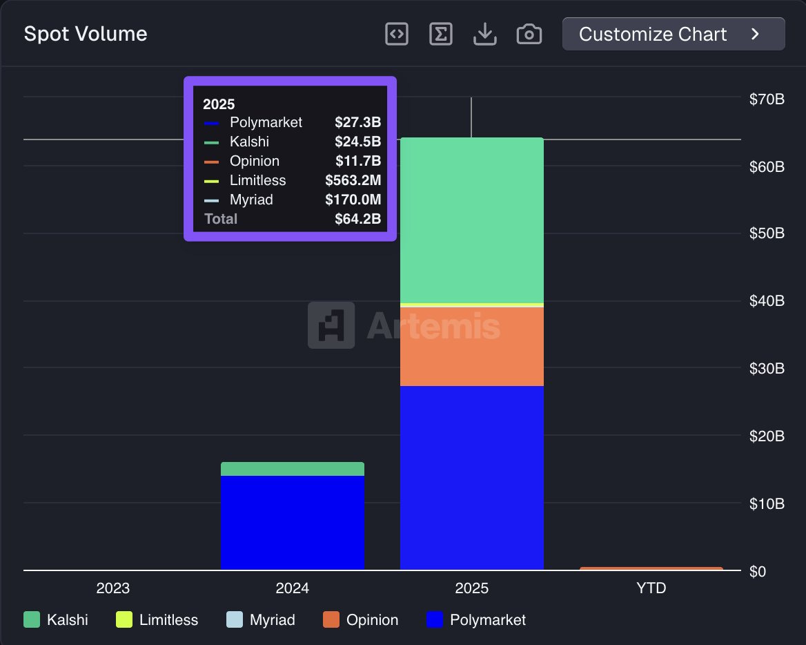 Prediction markets did more volume in December than all of 2024 combined - data by Artemis